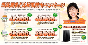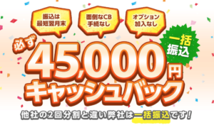 - ネットのみでも45,000円キャッシュバック。