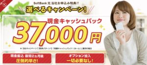 • SoftBank 光を「新規」でお申し込みの方は、37,000円キャッシュバック。