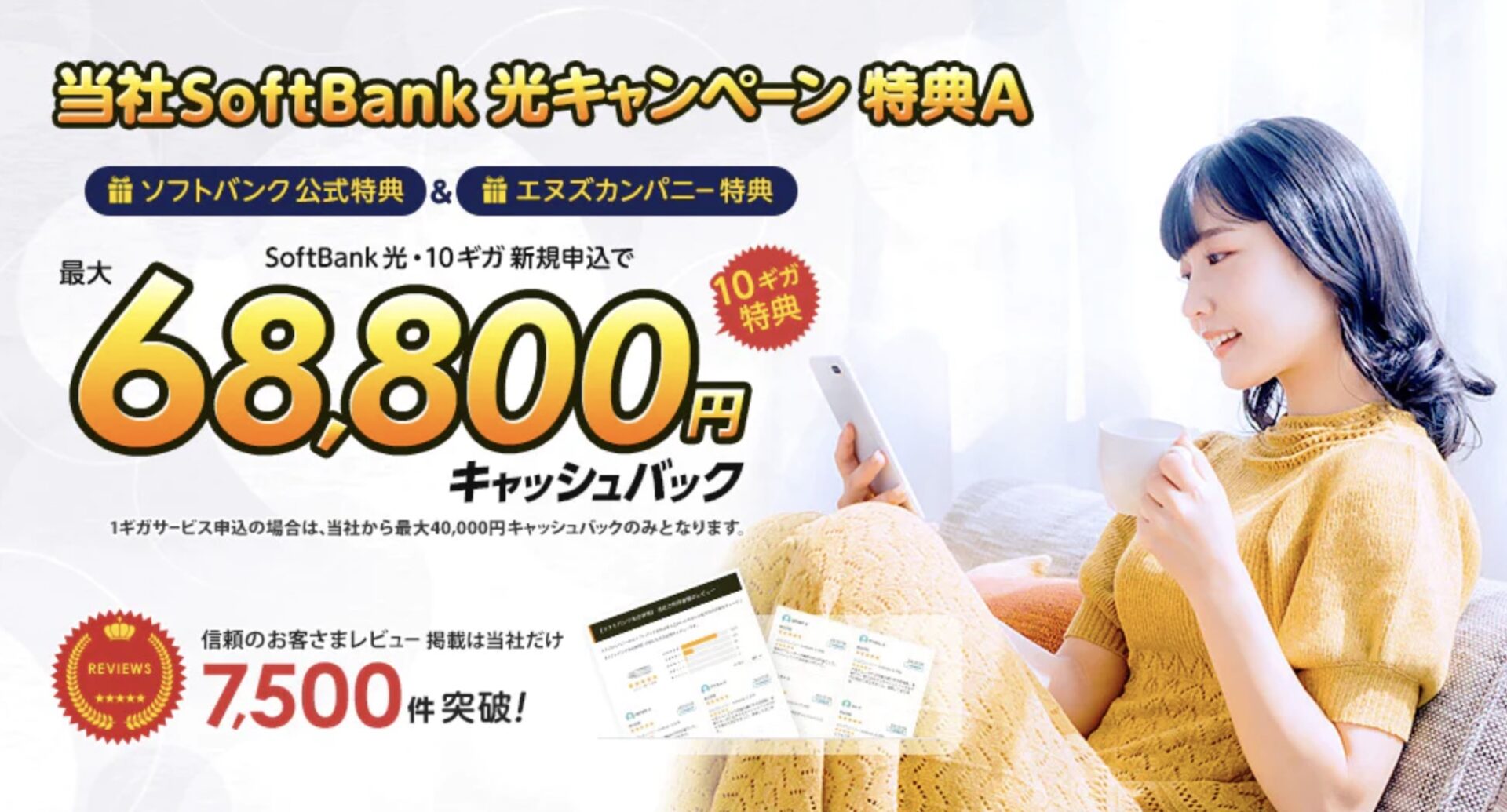 SoftBank光のキャンペーンは数多くありますが、キャッシュバック金額を重視する方にはエヌズカンパニー